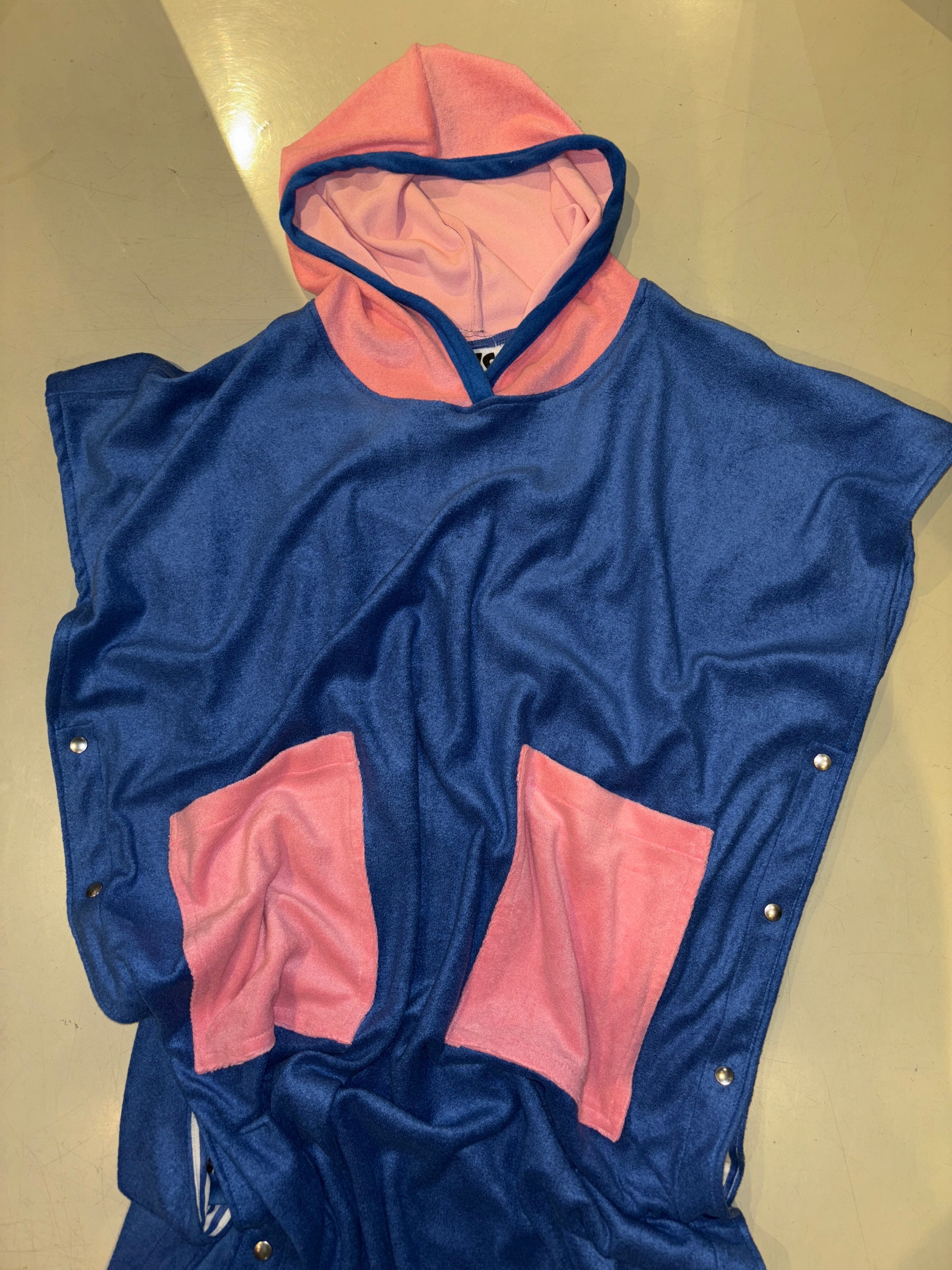 ⚫︎ボディはコバルトブルー×フード&ポケットはチェリーピンクのパイル地