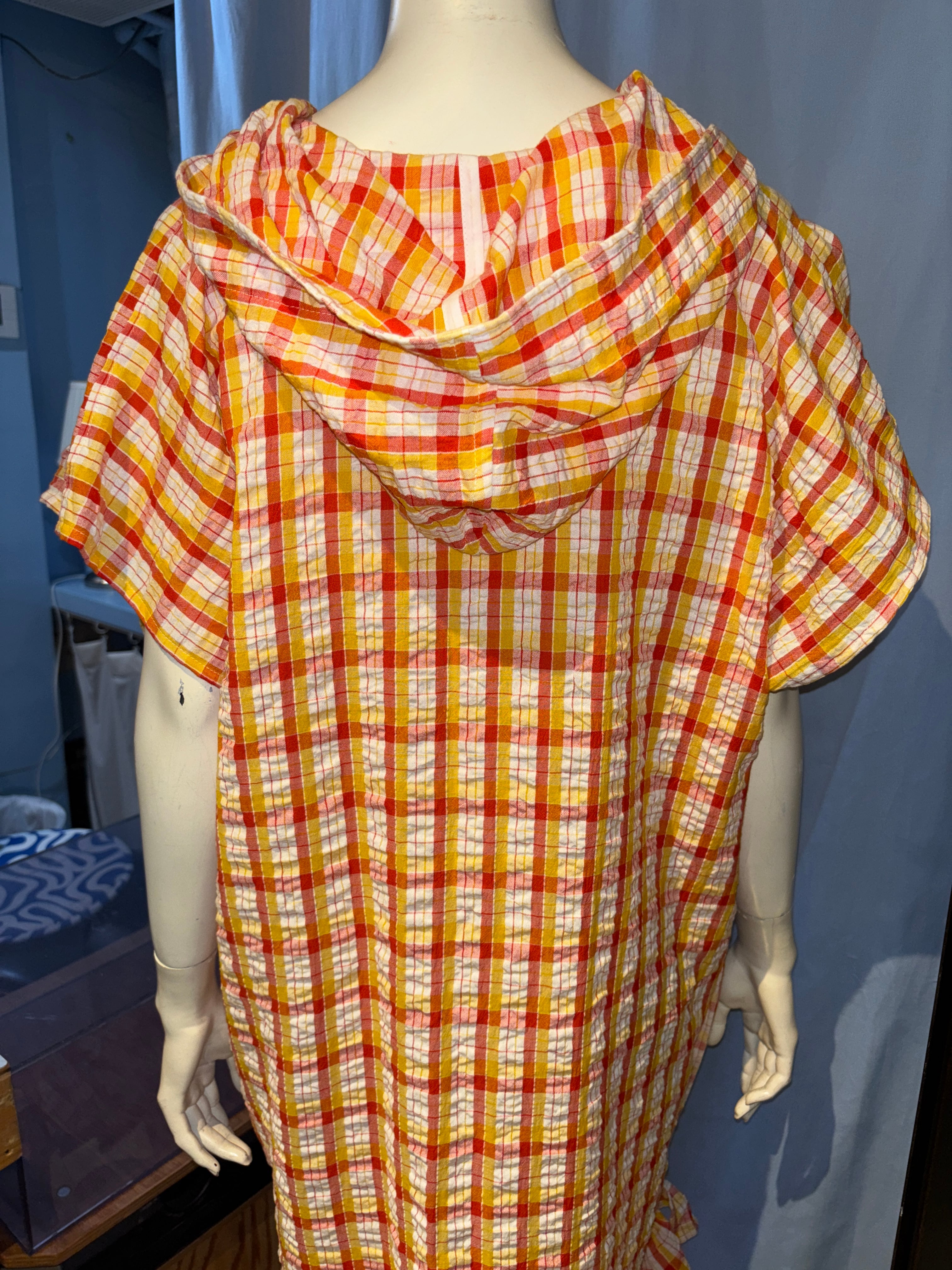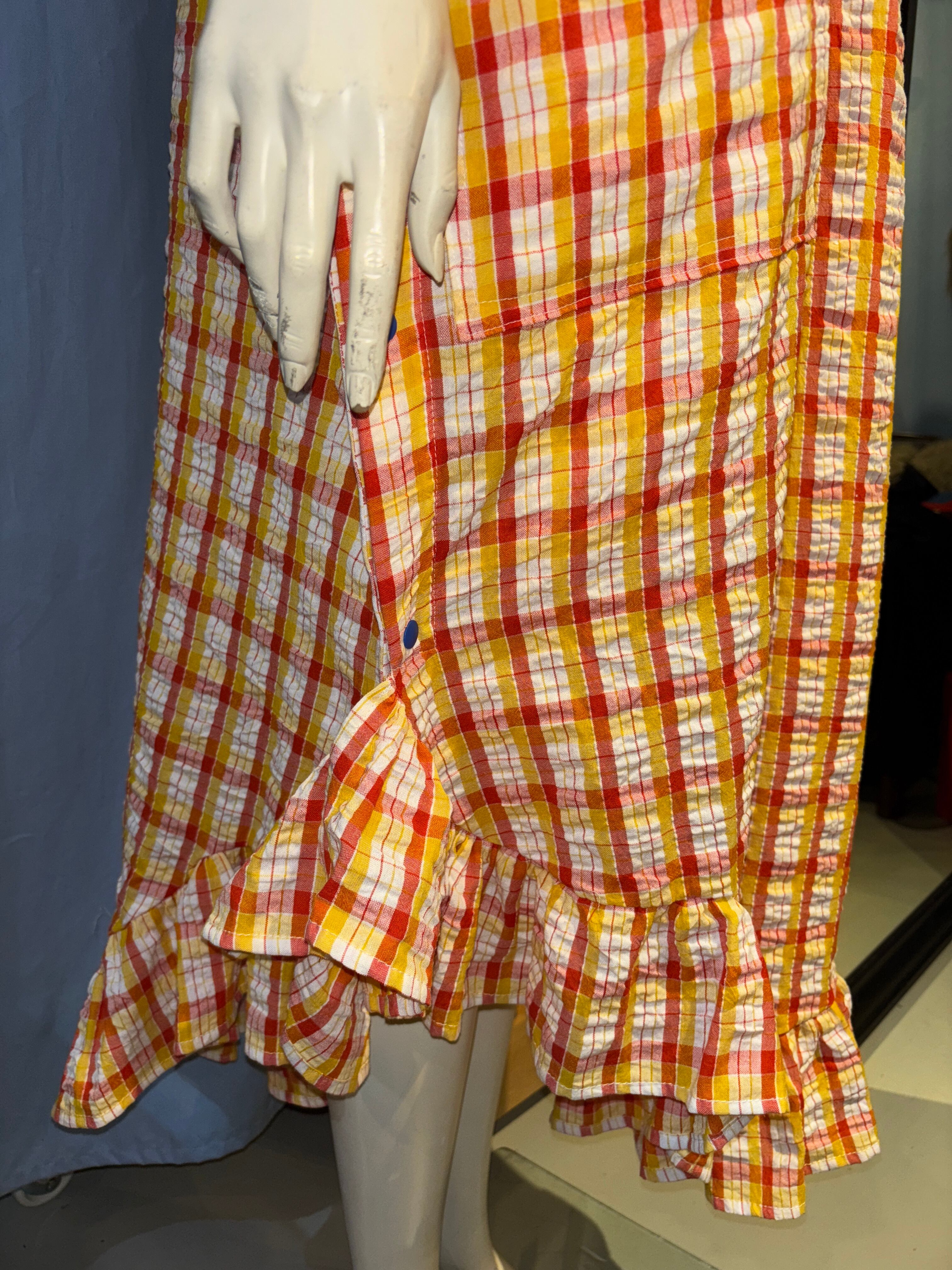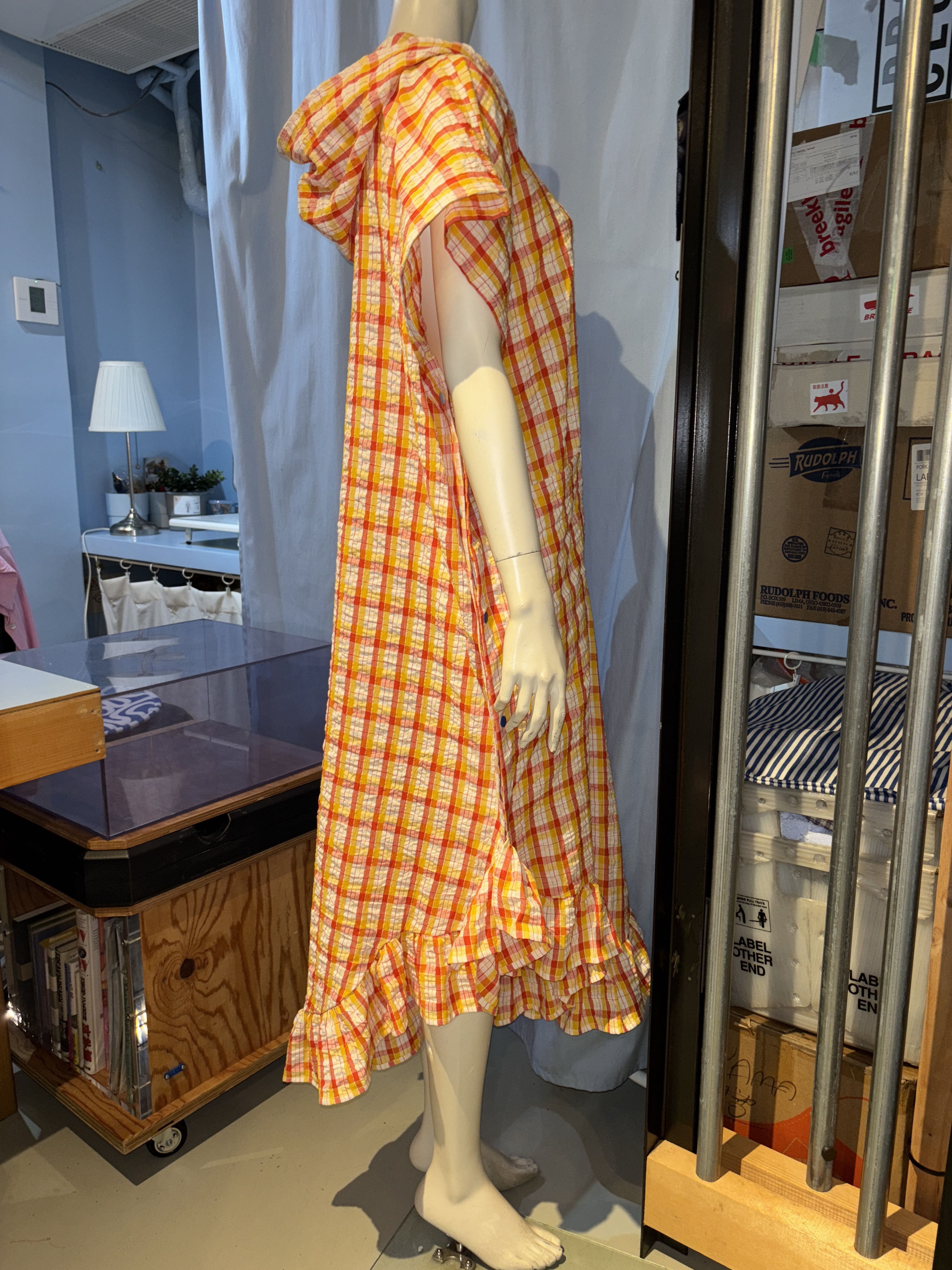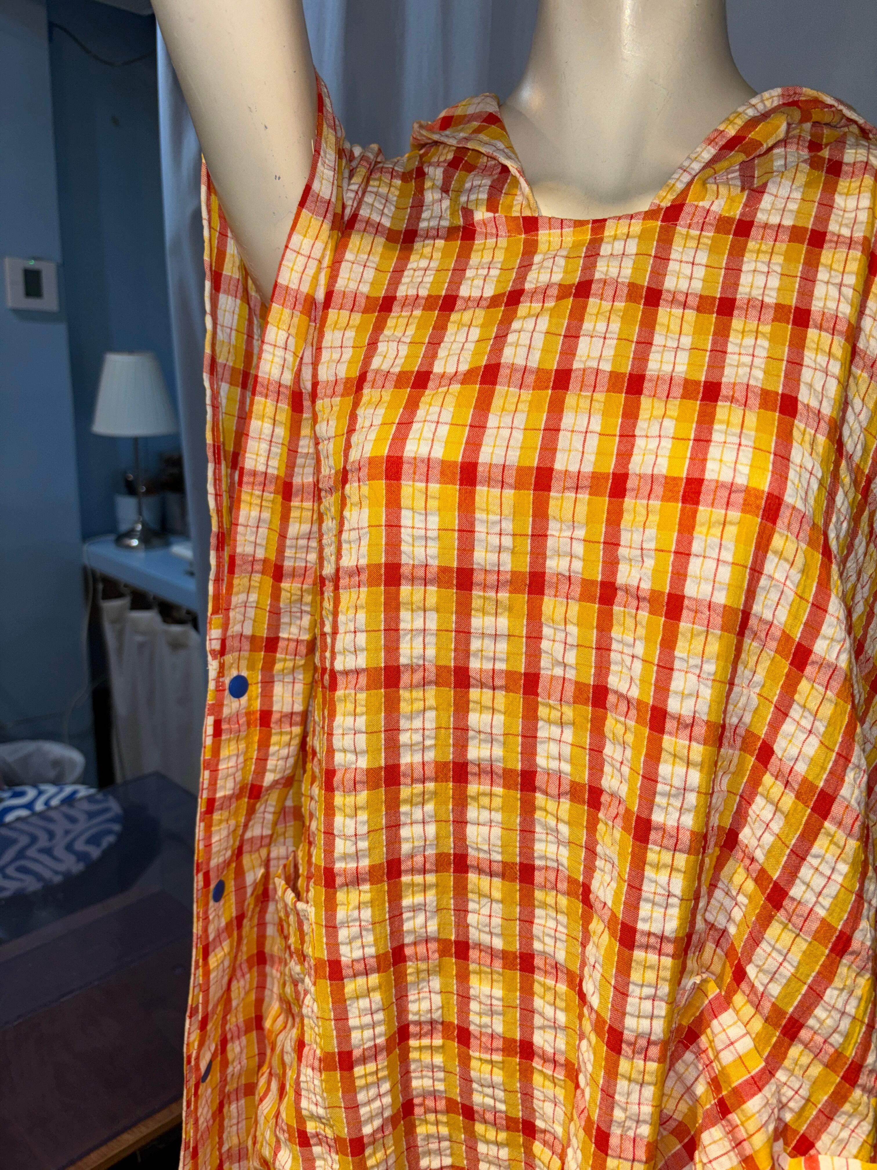 ビーチに映えるオレンジ×レモン色のマドラスチェック