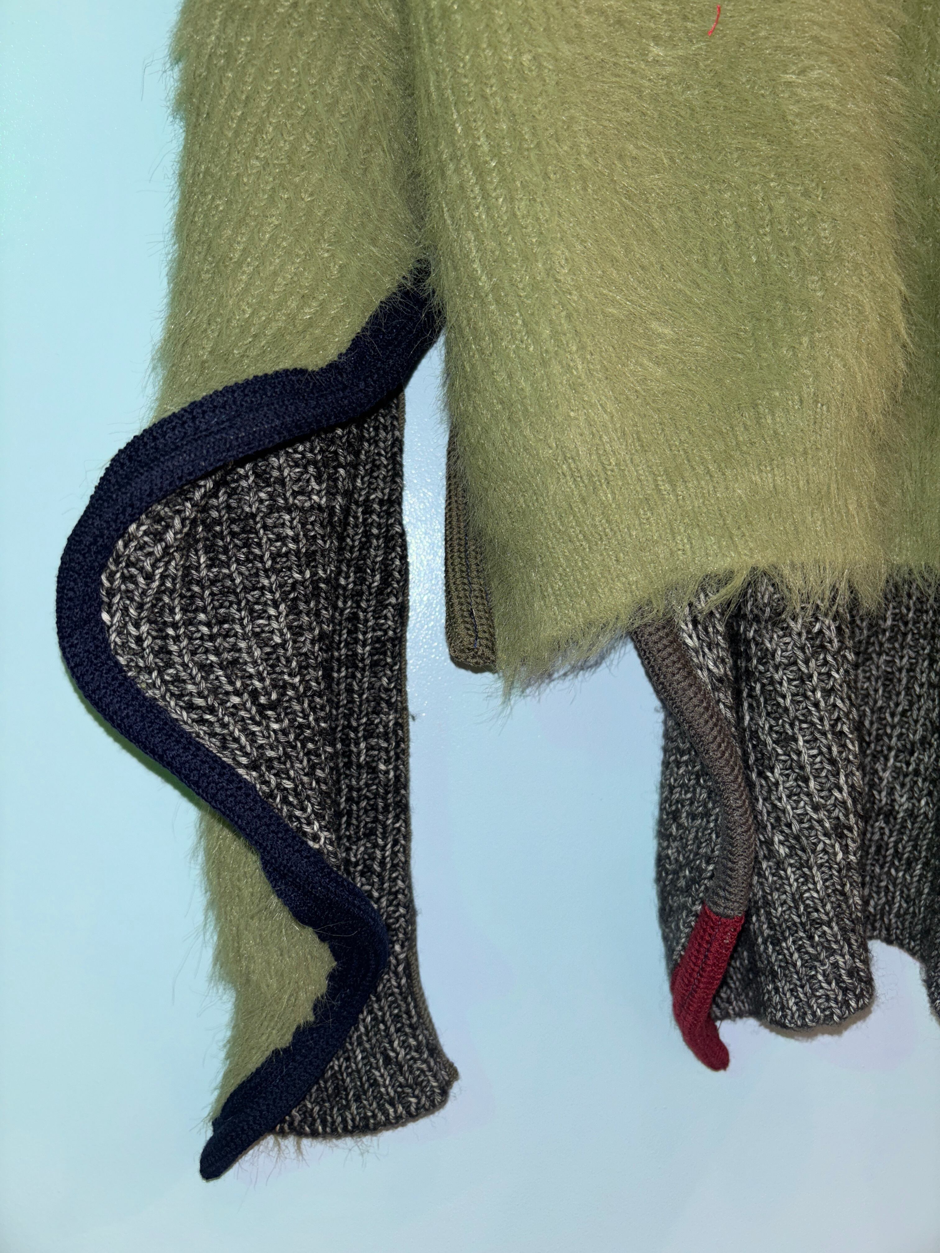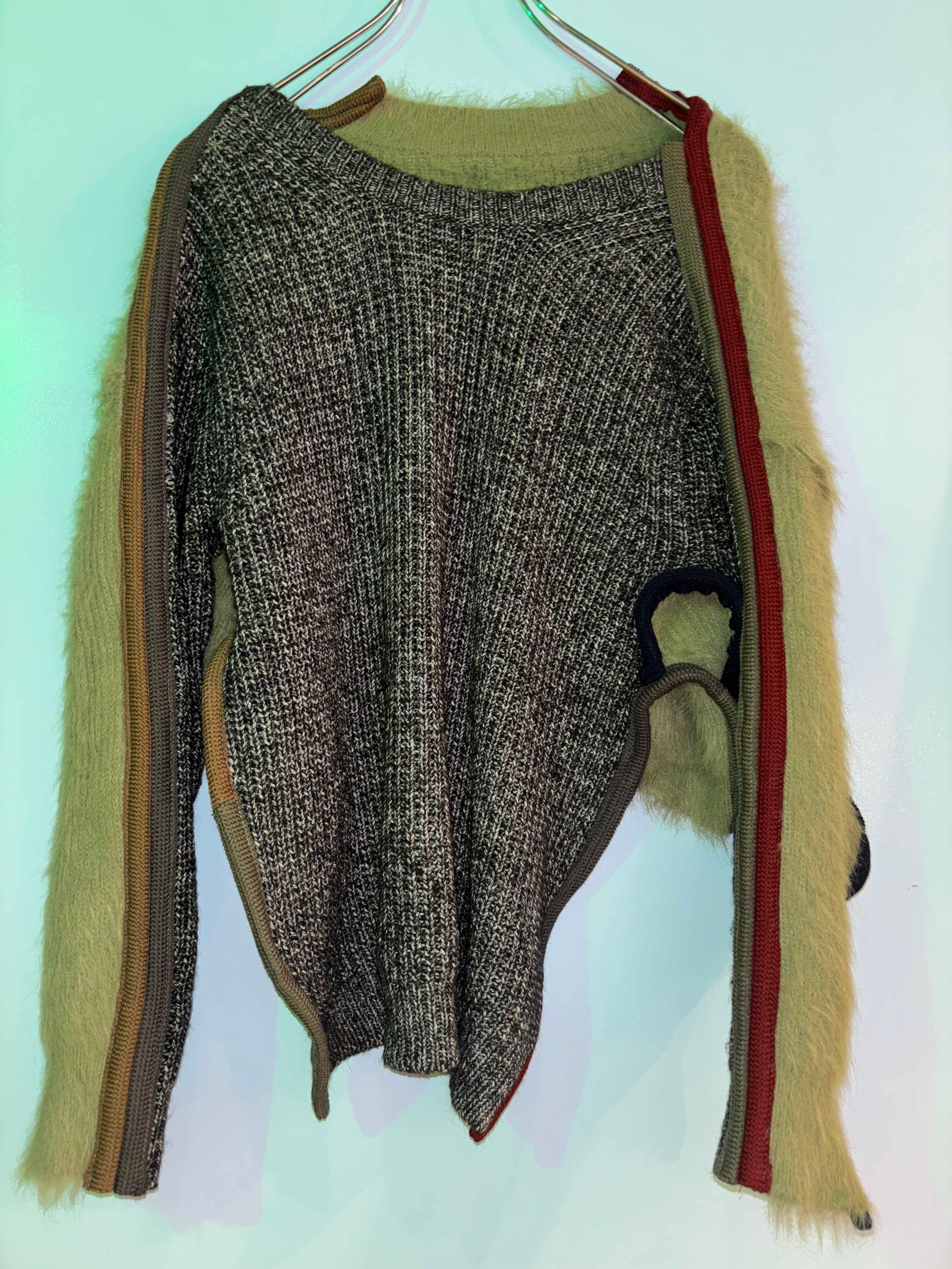 古着のシャギーニットとリブニットを組み合わせたリメイクセーター。
