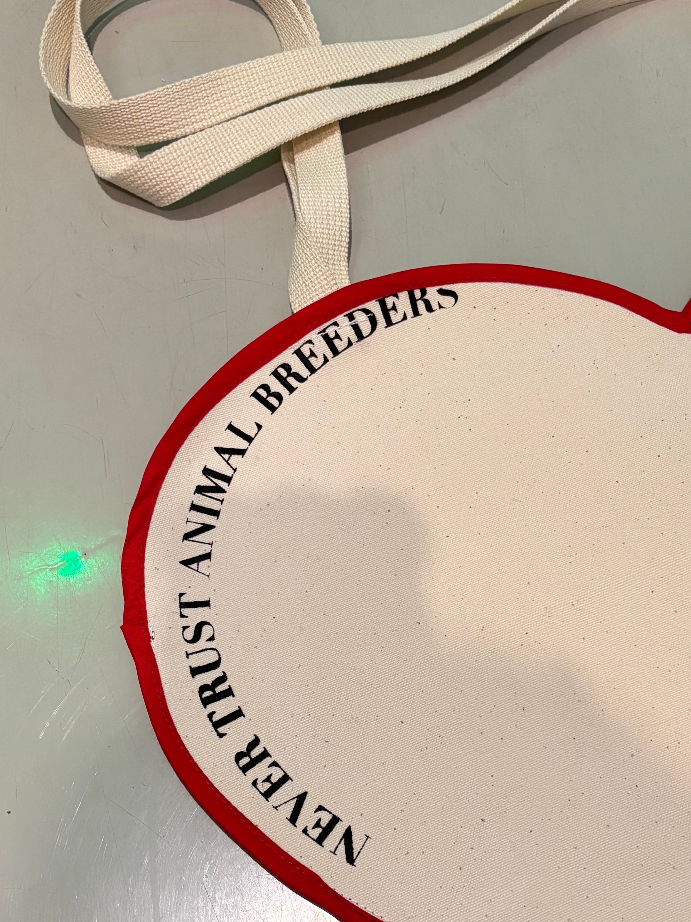 厚手の生成りキャンバス地に赤いヘム。