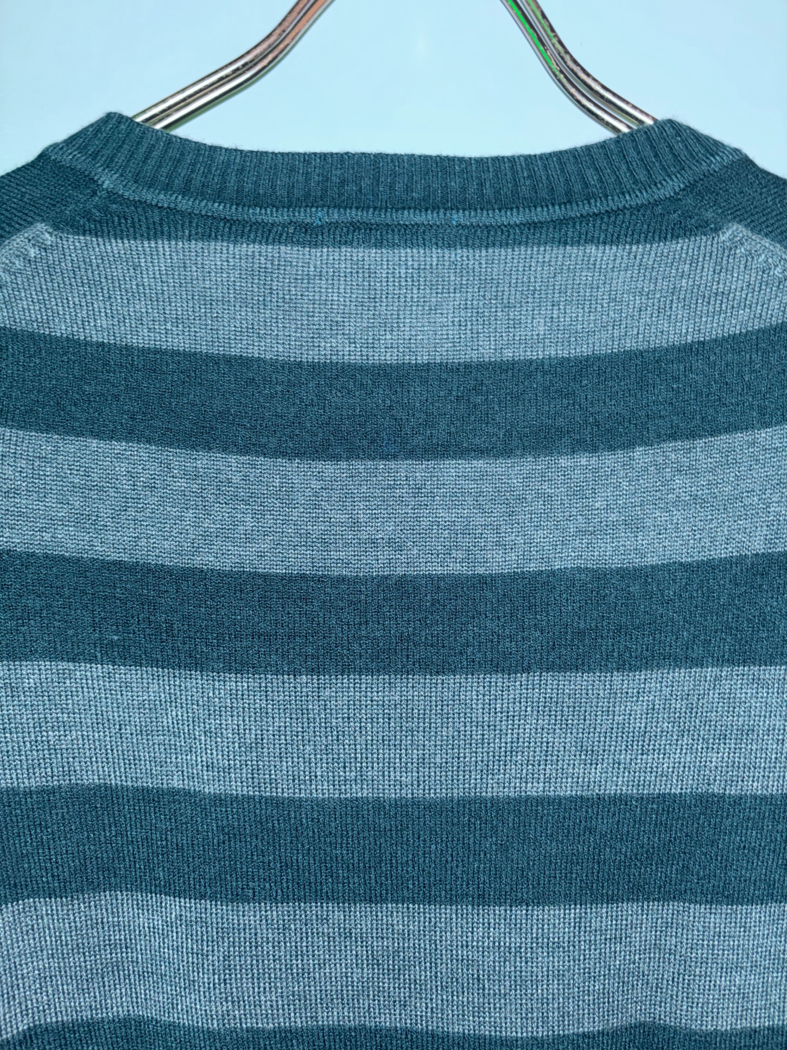 2枚のユーズドセーターをアシンメトリーに切り貼りしたリメイク商品です