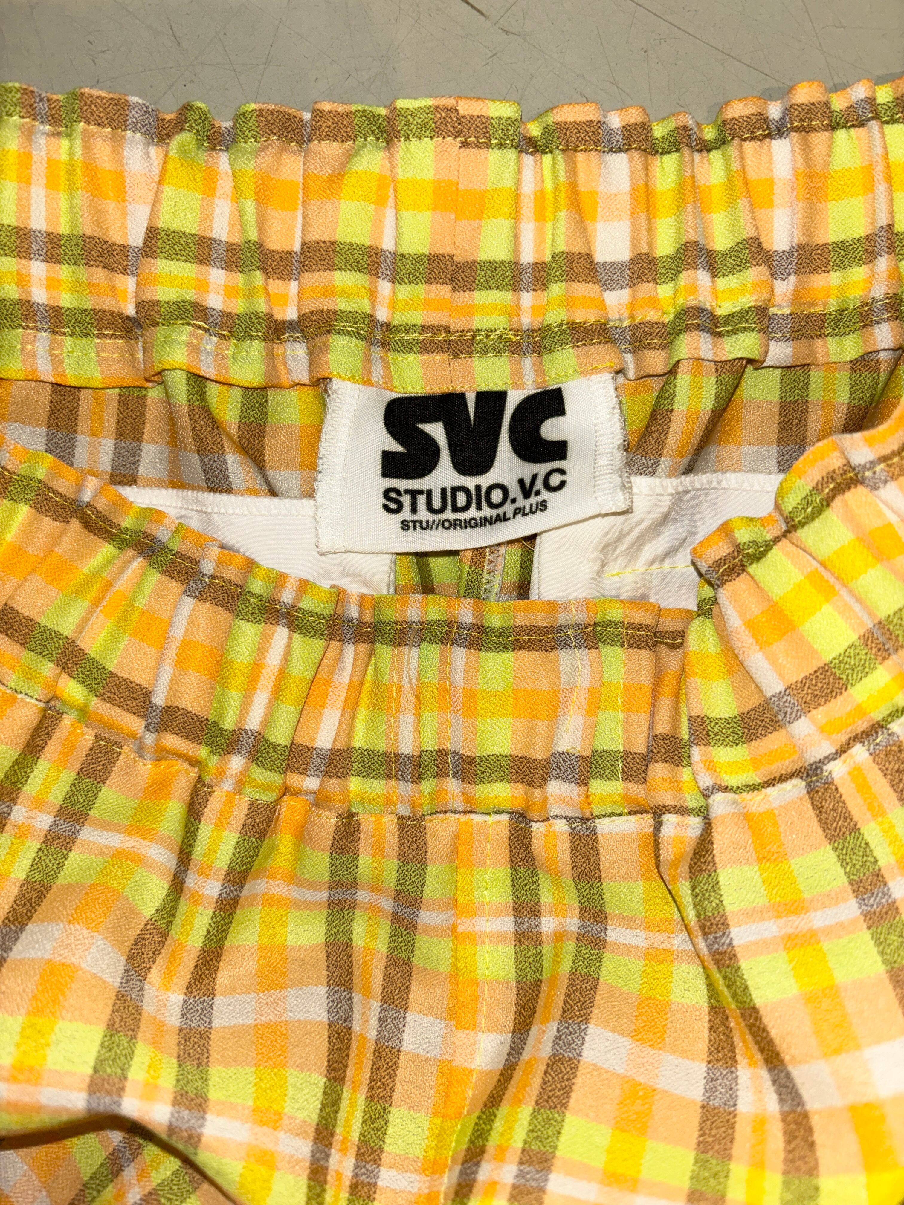 SVCオリジナル チェック柄 ワイドストレート イージーパンツ(サイドメッシュ)