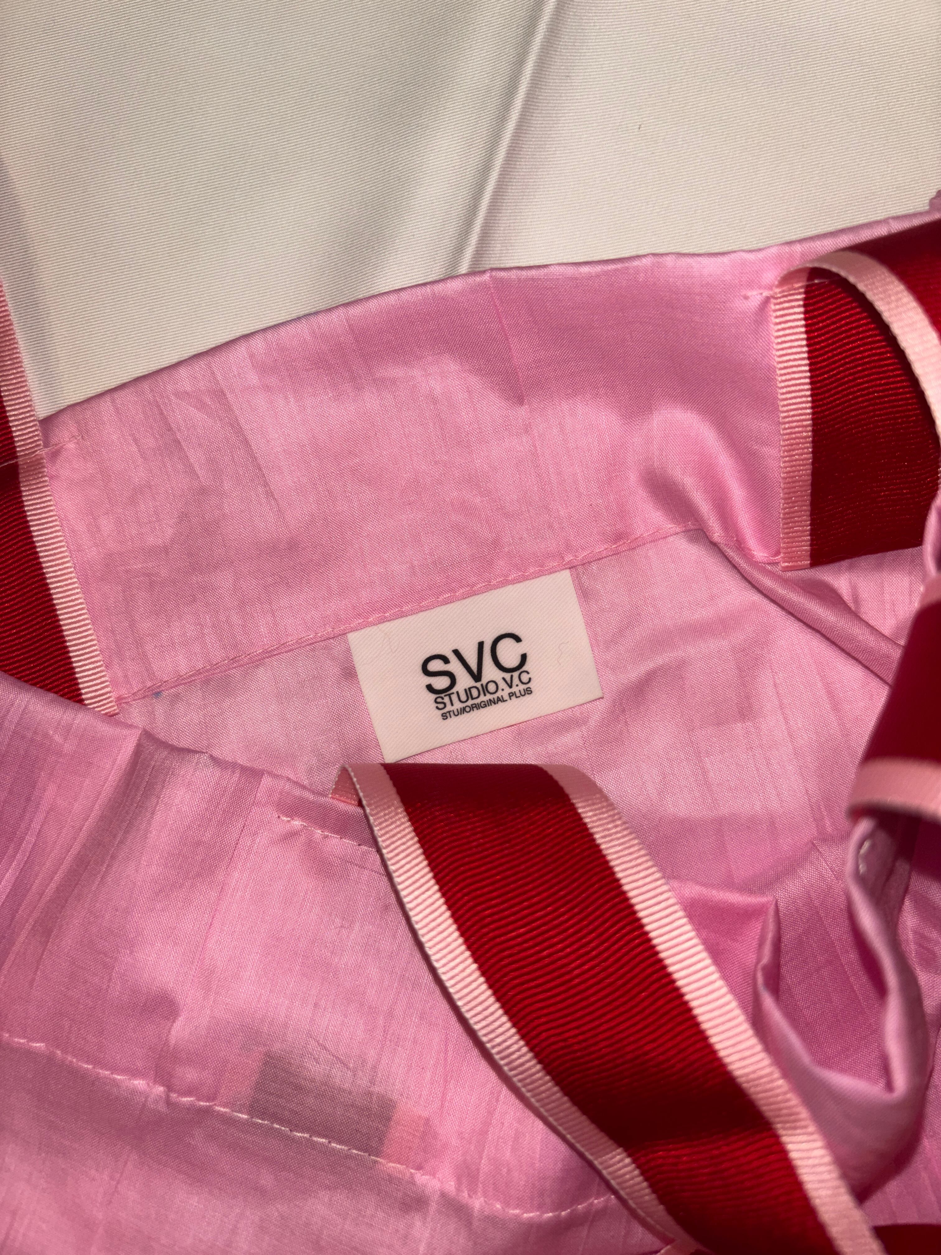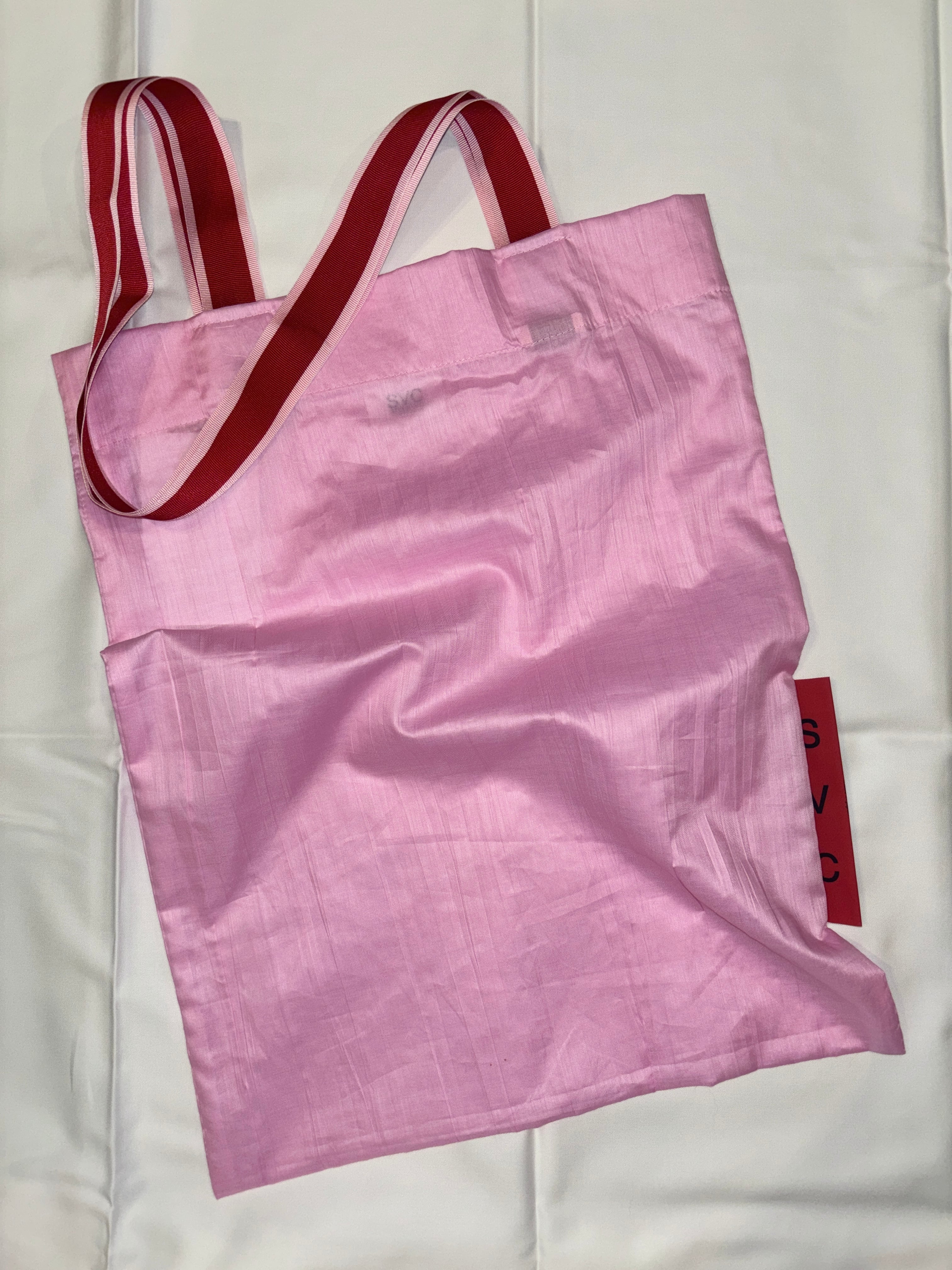 台湾で記憶に残る素朴で力強い色彩。装飾を削ぎ落とし、極力シンプルにデザインしました。主役は微かにシワ加工が施されたピンクの生地と赤いタグ。薄くて透け感のあるコットン素材です。タグは台湾の〈春聯〉をイメージしました。